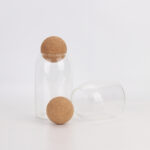 PREMIUM MATERIAL: Made of high-grade borosilicate glass, thick enhanced wall, capable of withstanding thermal shock, scratch, and break resistant. The cork round ball lid is made from natural wood and create you a healthy life.